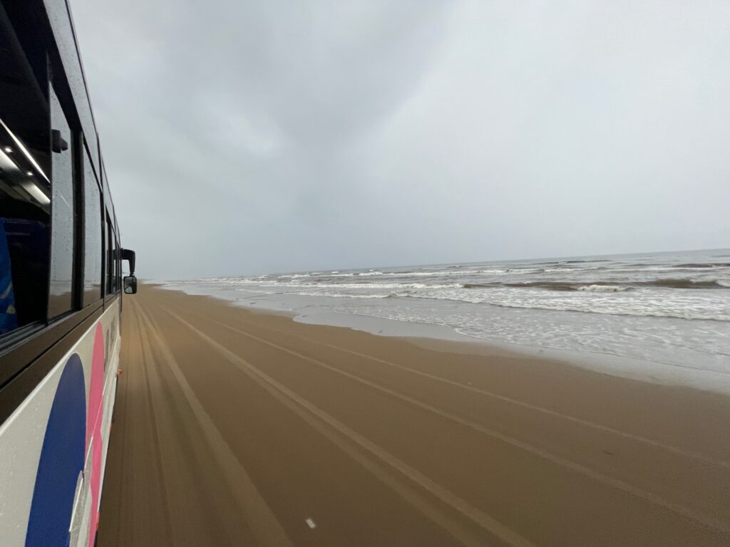 大型バスが走っても砂浜は全く影響もなく、轍があるわけでもないなんと表現すればいいか分かりませんがとても神秘的でした。